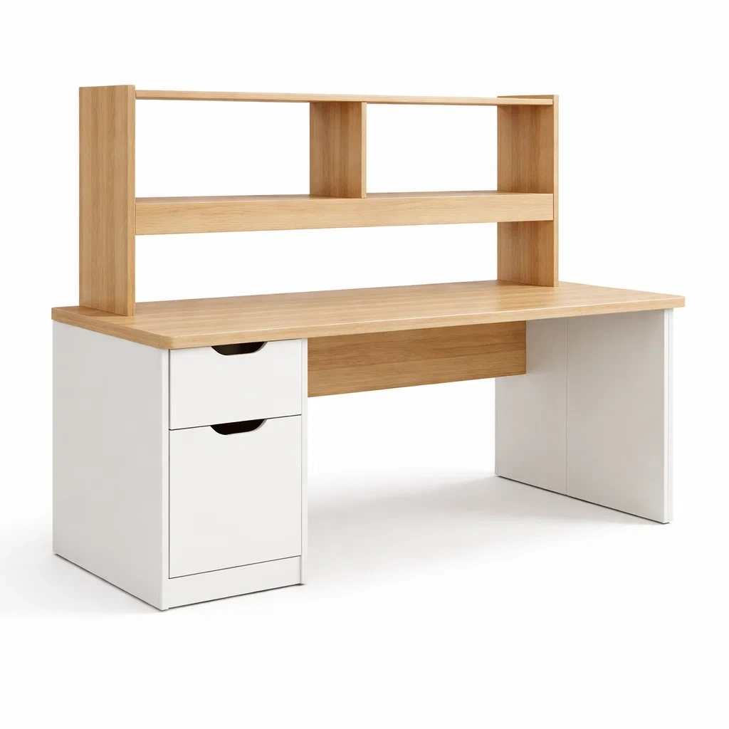 La scrivania presenta un design semplice e funzionale, adatto a diversi ambienti come ufficio, studio o camera da letto. La superficie ampia offre spazio sufficiente per computer, libri e altri oggetti di uso quotidiano. La struttura stabile garantisce un utilizzo affidabile nel tempo, mentre le linee pulite permettono di integrarsi facilmente con vari stili di arredamento.